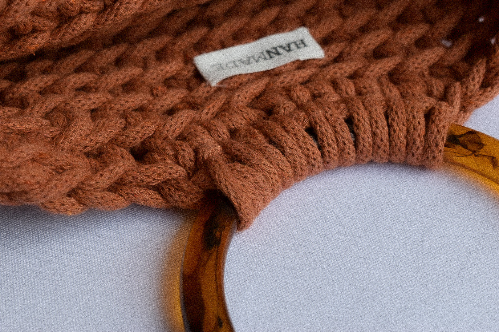 Ella HANBAG is crocheted by Hannah in her studio in Glasgow, using yarn made from 100% recycled cotton textiles.