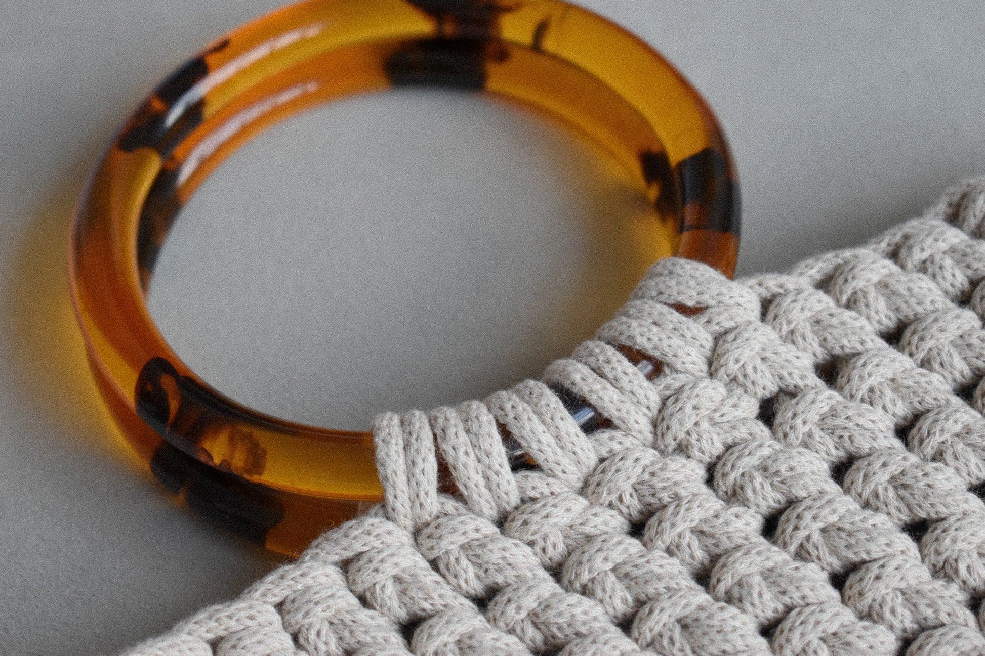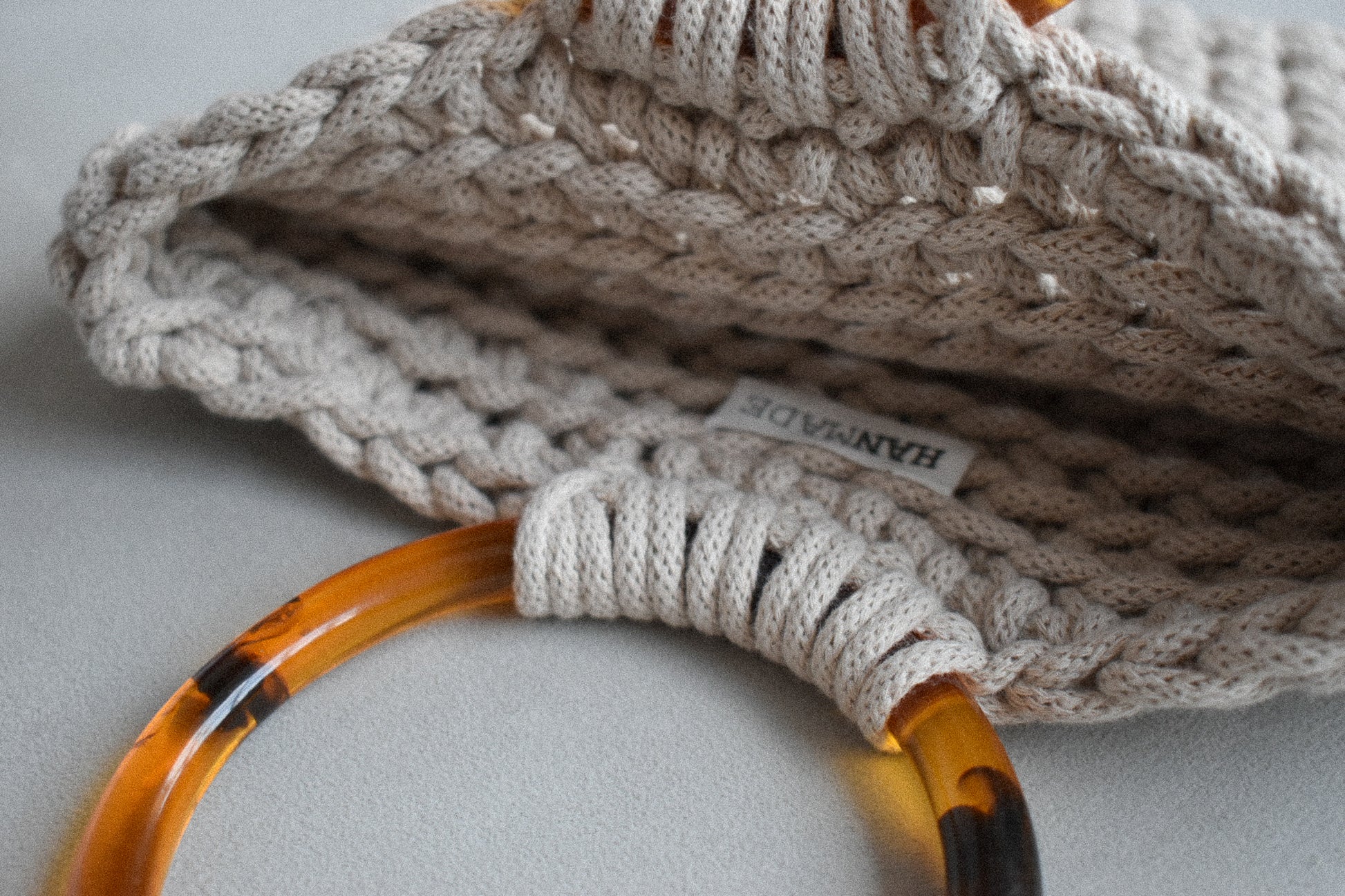 Ella HANBAG is crocheted by Hannah in her studio in Glasgow, using yarn made from 100% recycled cotton textiles.