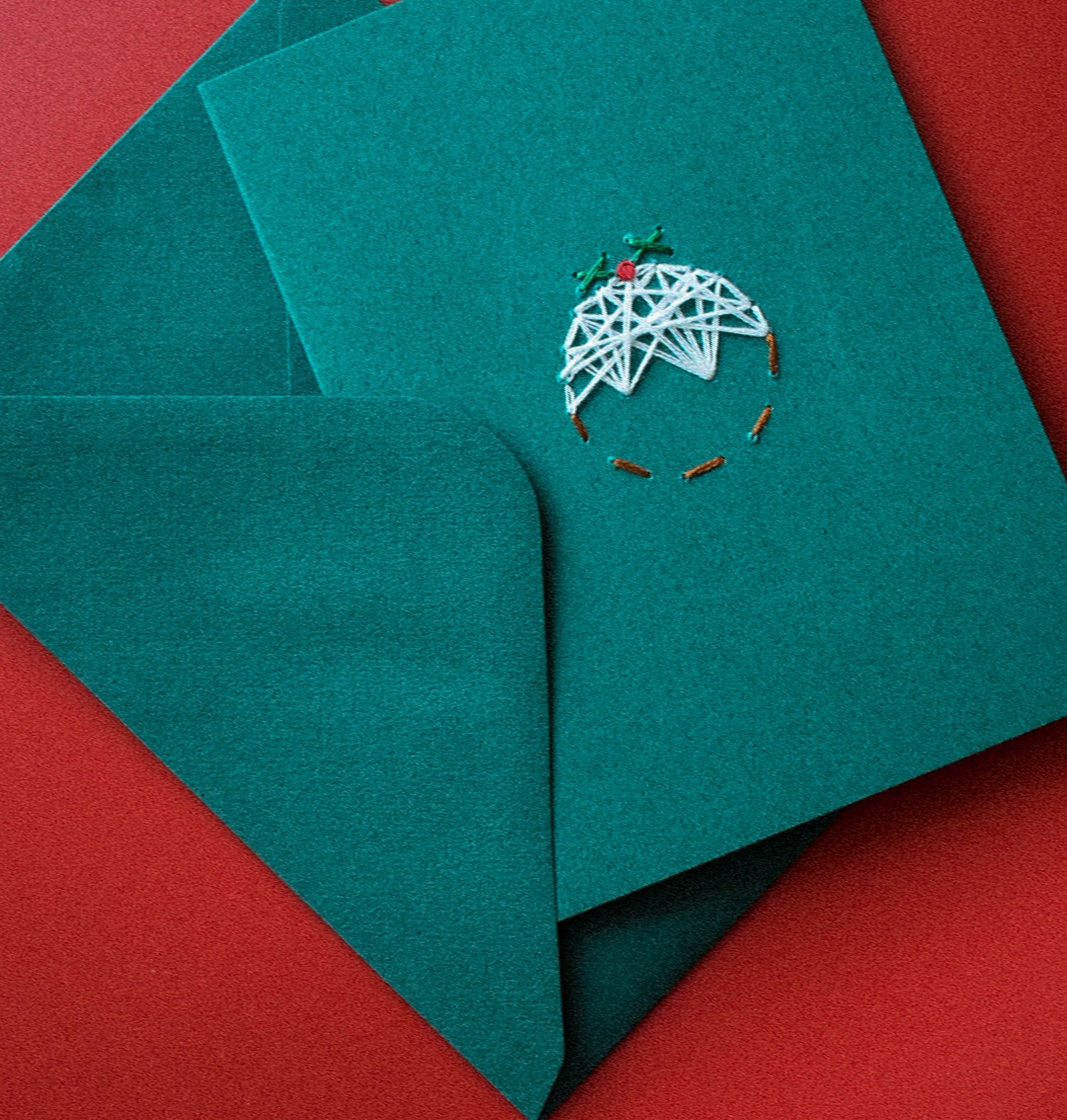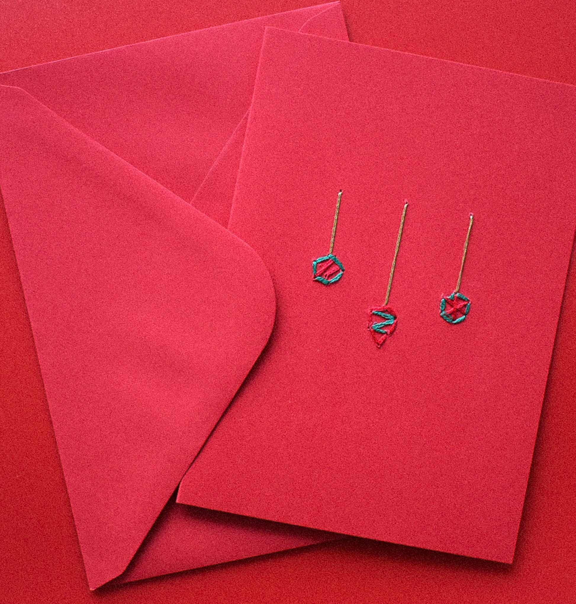 Unique hand embroidered A6 greeting cards with a different festive design on each.
