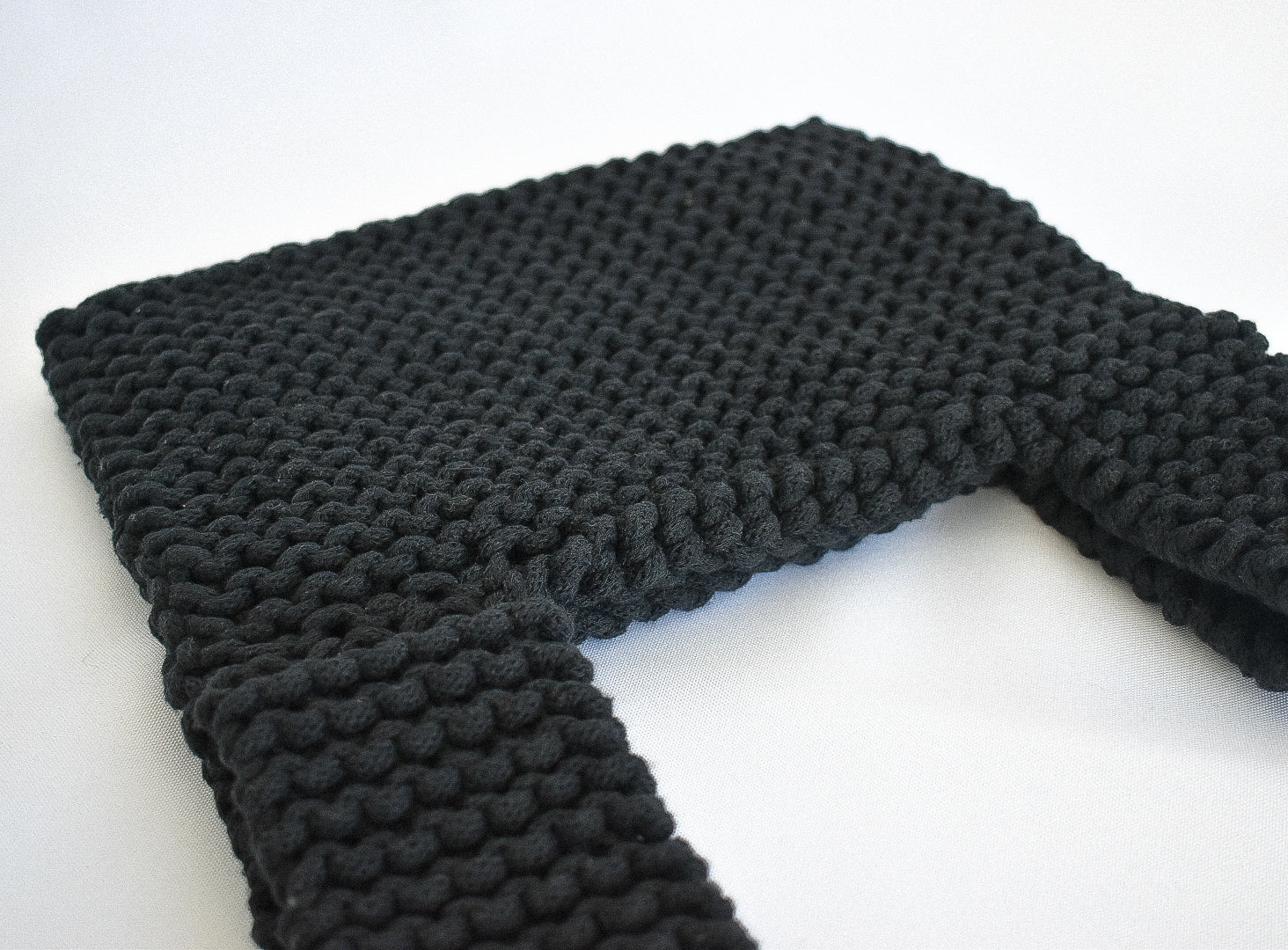 Phoebe bag is hand knitted by Hannah in her studio in Glasgow, using yarn made from 100% recycled cotton textiles.